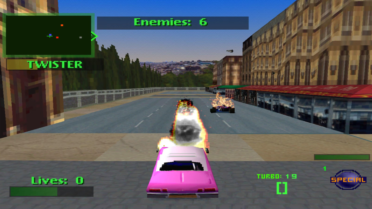 Twisted Metal 2: استعد لأقوى معارك السيارات في التاريخ! اختر مركبتك المفضلة وانطلق في دمار شامل عبر مدن العالم، من باريس إلى نيويورك. هذه النسخة الكلاسيكية تأتيكم مع إصلاحات شاملة (dgVoodoo) لضمان عملها بسلاسة على الأنظمة الحديثة وبسرعة الرسوميات الأصلية.